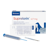 Супрелорін® - це імплантат пролонгованої дії, який містить деслореліну ацетат (суперагоніст гонадотропного гормону). Застосовується у здорових, статевозрілих собак і тхорів, які не були кастровані, щоб зробити їх тимчасово безплідними. Імплантат вводиться підшкірно, під вільну шкіру на спині між нижньою частиною шиї та поперековою ділянкою у собак і між лопатками у тхорів. Ефект супрелорину можна побачити приблизно через шість тижнів у собак і від п'яти до 14 тижнів у тхорів. Ефект триває протягом шести місяців у випадку імплантату 4,7 мг для собак та 12 місяців у випадку імплантату 9,4 мг для собак (16 місяців для тхорів), після чого собаці та тхору можна зробити повторну імплантацію, якщо це необхідно.